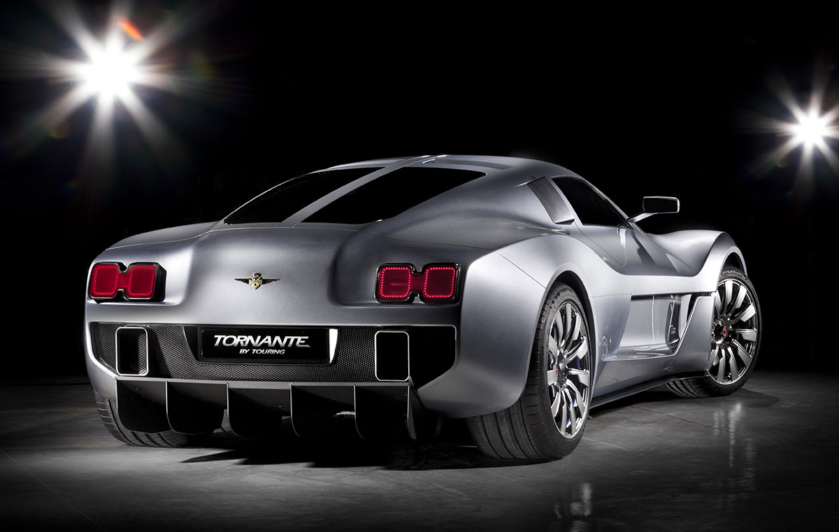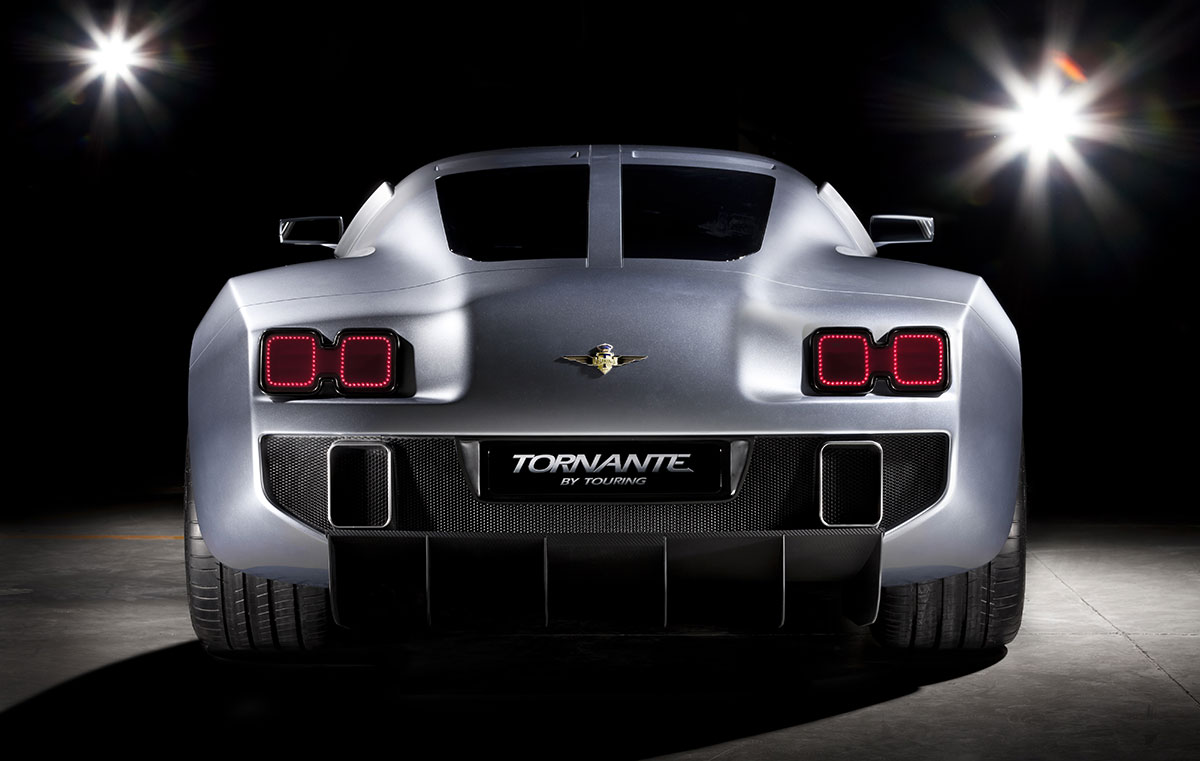 The Tornante replicates the original Touring Superleggera construction principle: a shape-defining space frame, over which are fixed the body panels, but in this instance they are made from carbon fibre. This superstructure is built onto a carbon fibre chassis.