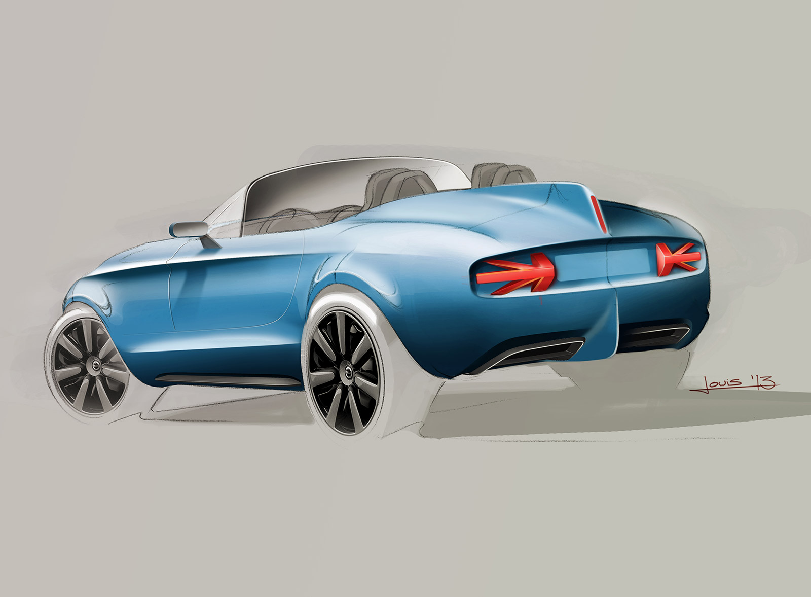 The striking fin defines the look of the rear, adding a touch of extravagance, and a reminder of Touring designs from the past.  It gives the MINI Superleggera™ Vision a particular longitudinal dynamic while at the same time embodying the unconventional air of both MINI and Touring Superleggera.