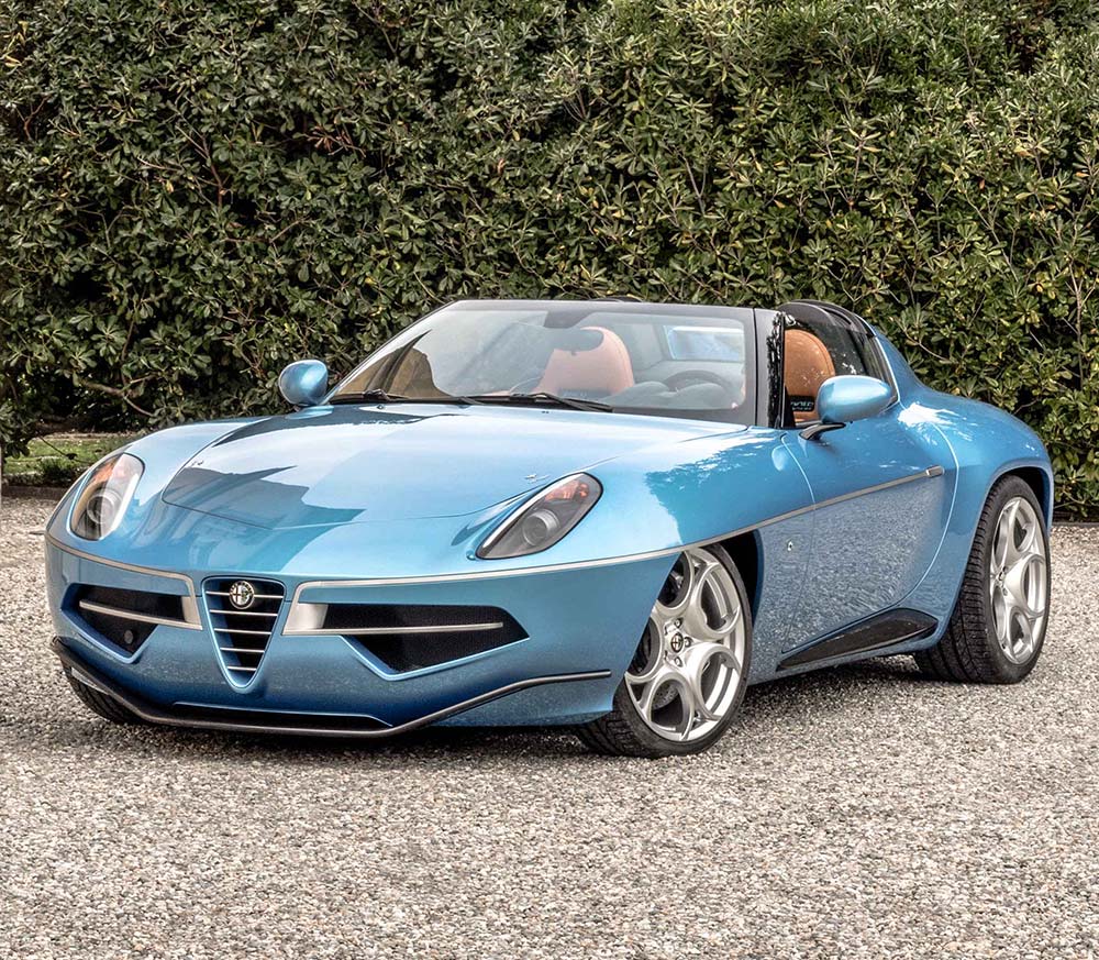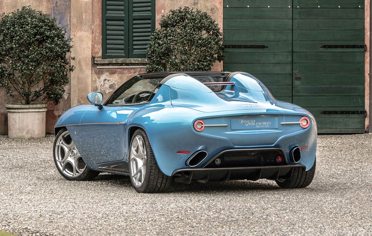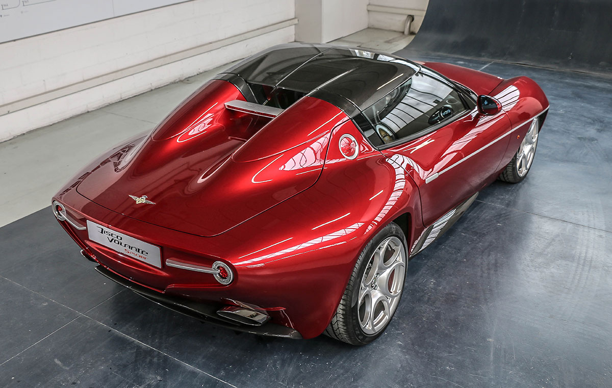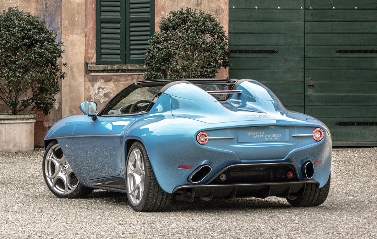 The Alfa Romeo Disco Volante Spyder is a dramatic two-seater open top car, coach built to order, in a limited run restricted to a maximum of seven units.
