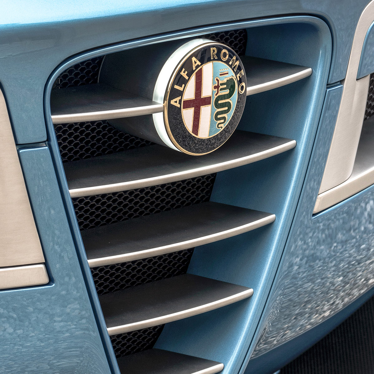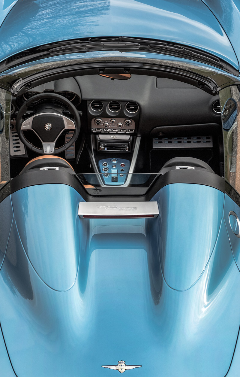 Endorsed by Alfa Romeo, whose badge it proudly wears, it is based on the rolling chassis and drivetrain of the Alfa Romeo 8C Competizione Spyder.