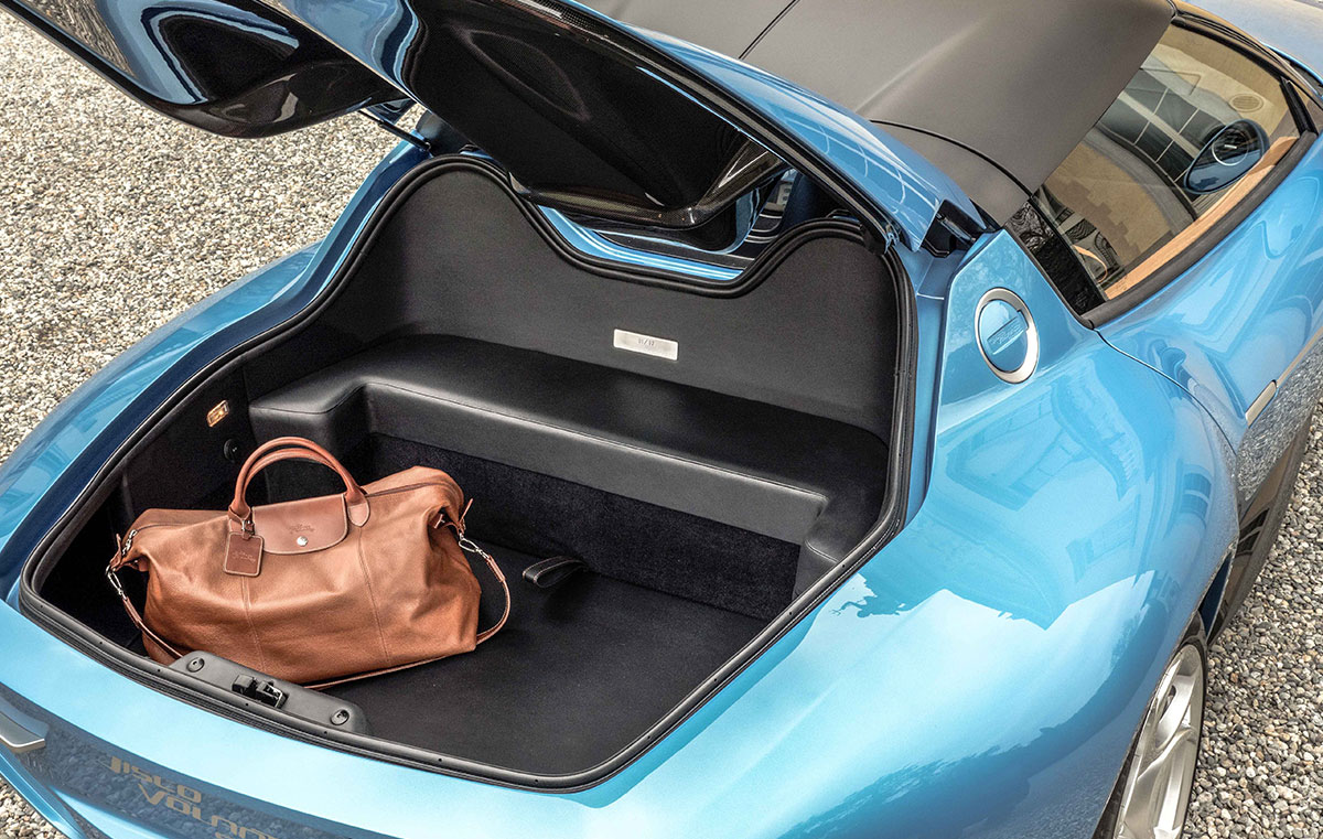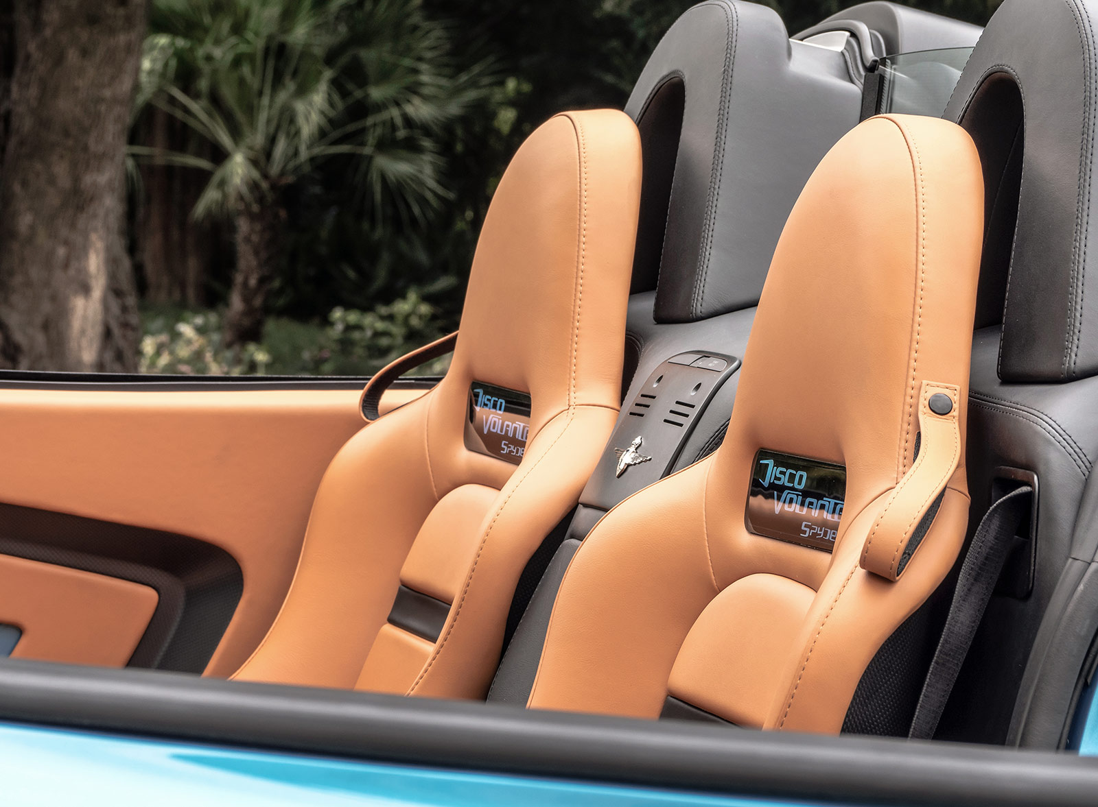 Superleggera means super lightweight in English, so removing weight was a major objective in the roof design. An innovative twin panel carbon fibre roof gives the car all the protection of a true coupé. When fitted, it converts the Disco Volante Spyder into a comfortable, fully insulated fixed-head sports car.