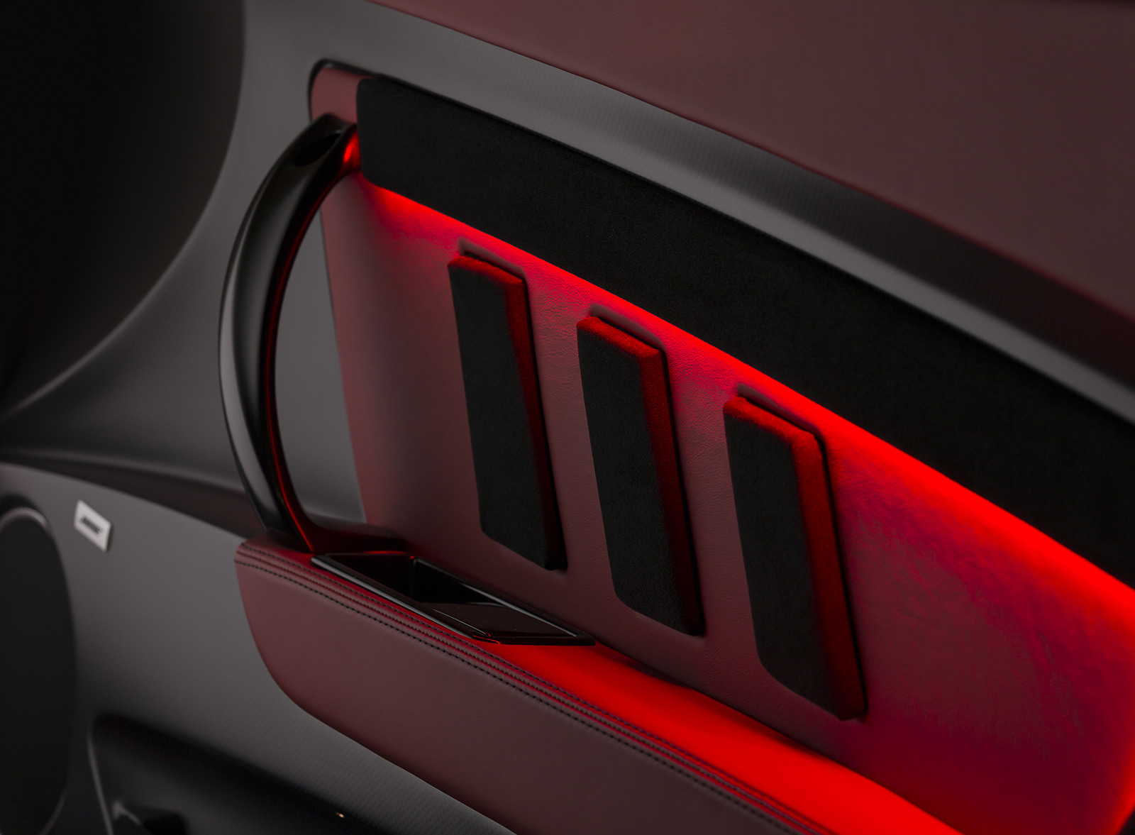 Skilful touches inspired by aviation design, such as the instrument panel with red LED lights giving it a “spaceship” – indeed a “flying saucer” – feeling.