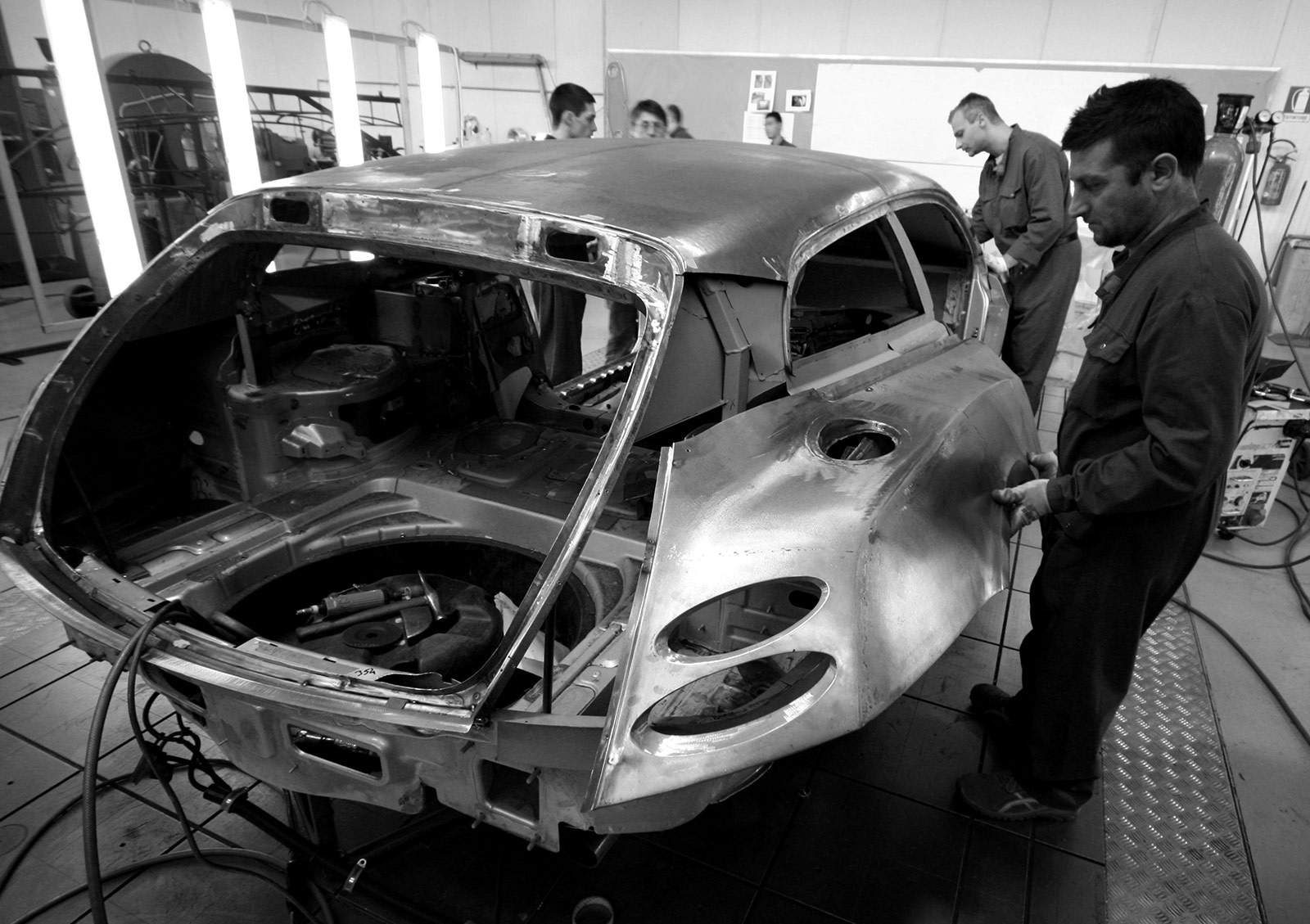 The overriding factor of traditional coach building is the vast amount of handwork that is involved in the creation of a new body. From the A-pillar backwards, new exterior body panels are hand shaped in steel – including the roof, new wider rear wings, and the internal reinforcements of the complete rear section of the car.