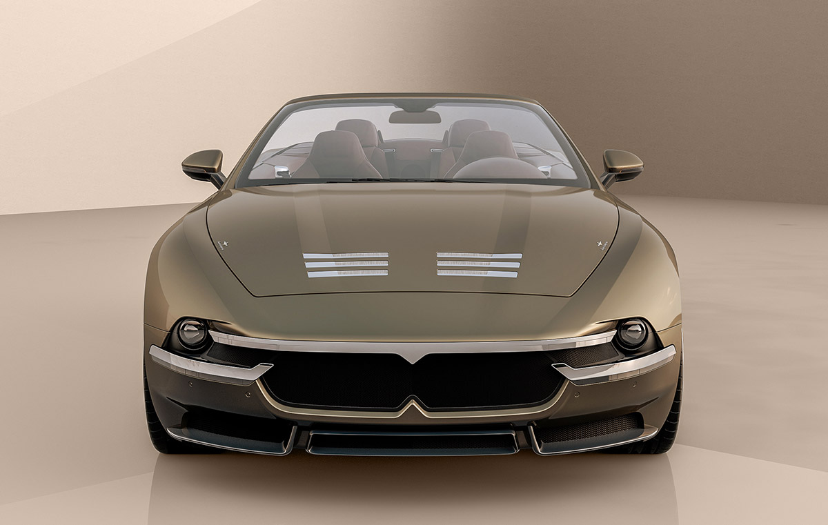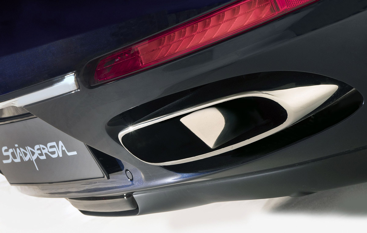 The already dramatic proportions of Sciàdipersia coupé are further emphasised in the Cabriolet version. The sharpened front, powerful haunches and Kamm-tailed rear are exaggerated by the smooth flowing lines, depicting a tautness and dynamism that appears even greater with the roof lowered.