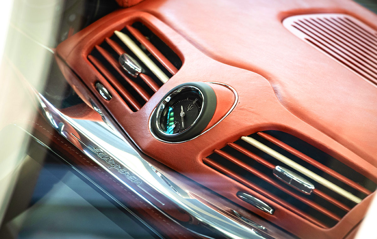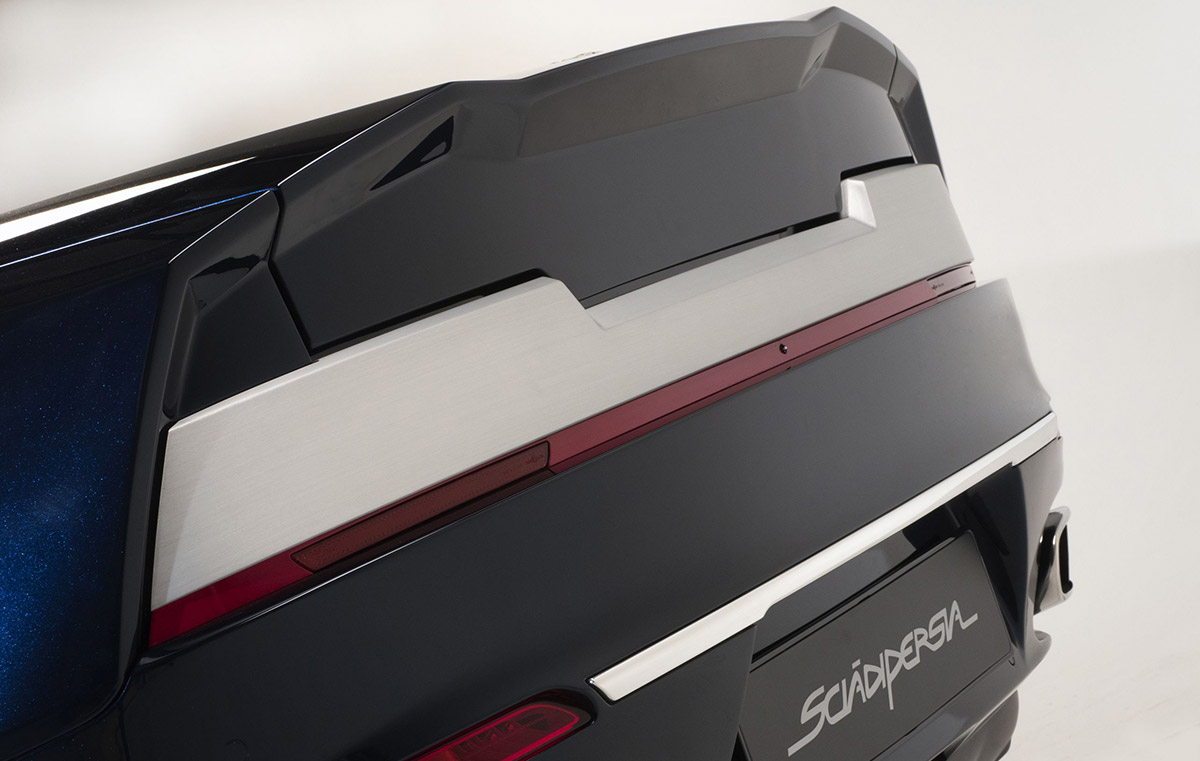 Sharp edges and flat surfaces give suggestions of elegant styles from the 1970s, while the clever use of different treatments for the brightwork finishes reveal the true hand-crafted coachbuilt nature of the Sciàdipersia.