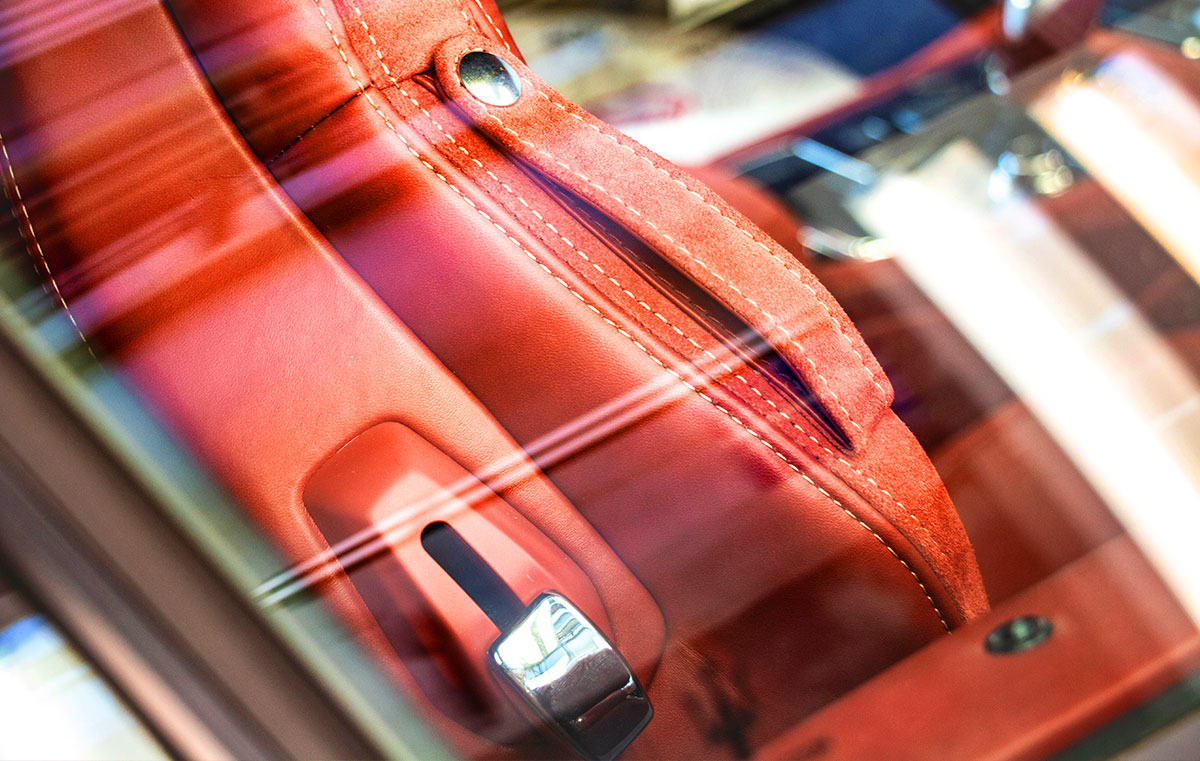 Fittingly for an open car, themes are copied across from the exterior to the interior space. As with all Touring’s products, the colours and finishes are determined by the customer, who is involved throughout the design process.