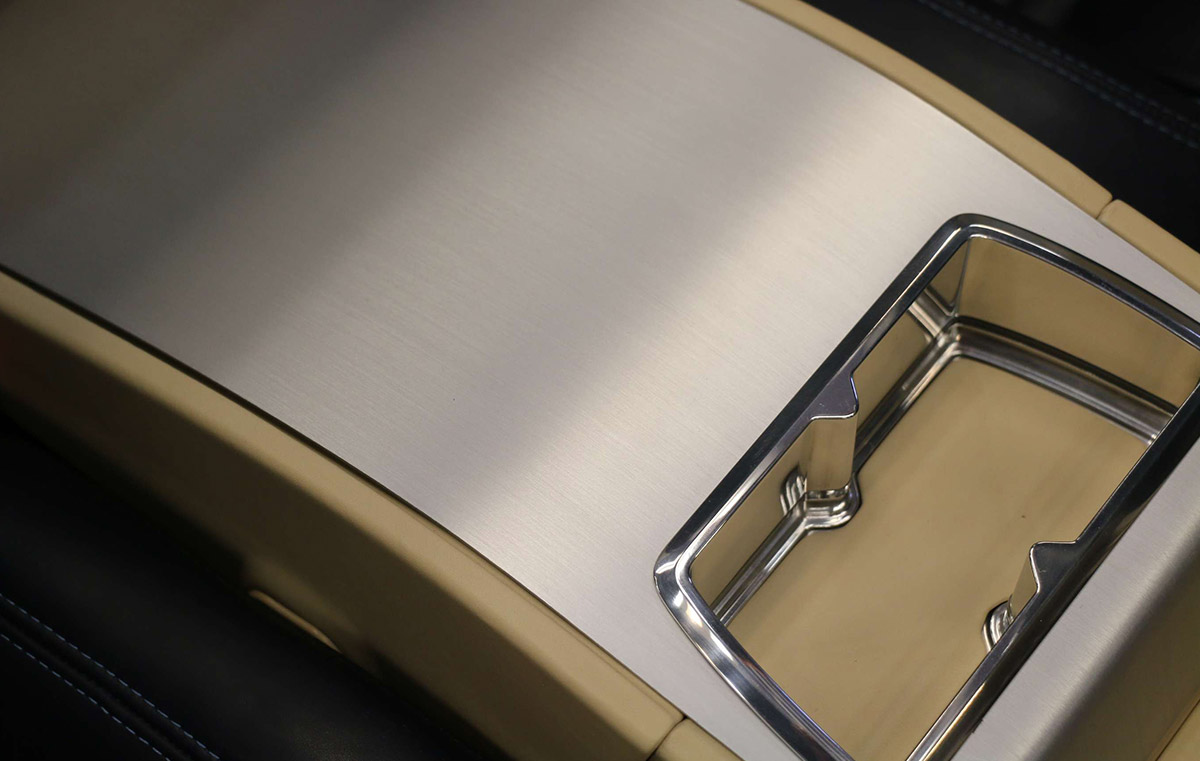 The highly polished aluminium trim is juxtaposed with hand-brushed satin finishes, to orientate the light reflection in subtly different ways. Another tribute to craftsmanship, a testament to the coachbuilt nature of the car.