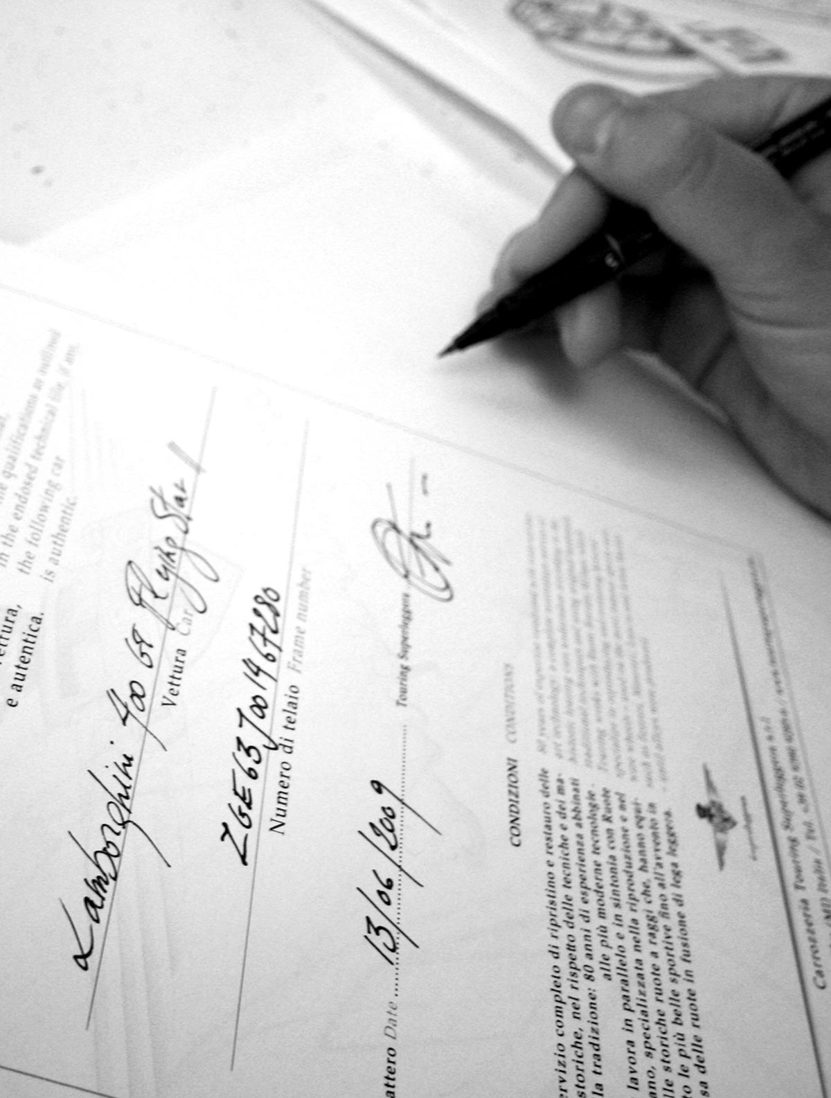The value of each classic car restored by Touring Superleggera is enhanced by the Certificate of authentic restoration. It determines that the restoration is performed not only according to the art book, but also respecting rules and processes of the age they were built.