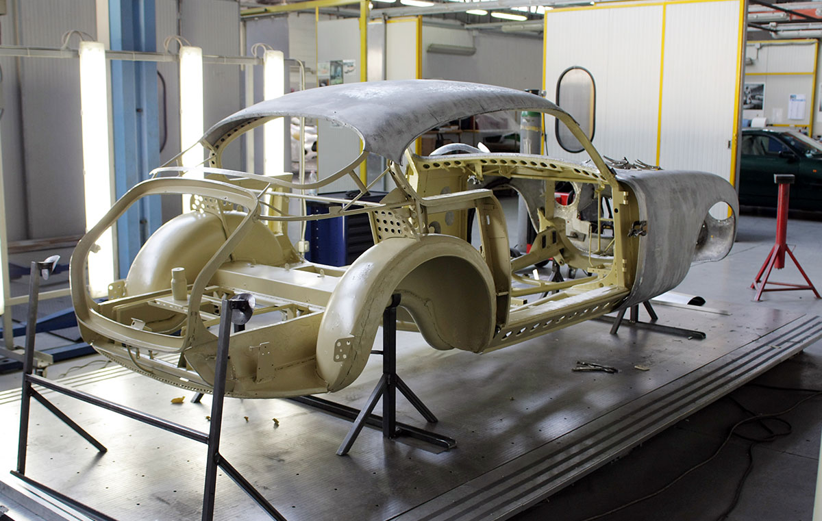 After validation on the measurement platform, the body was totally removed and inspected in agreement with the owner, it was decided to preserve and repair as many parts as possible, including straightening of the accident – damaged right-side frame members.